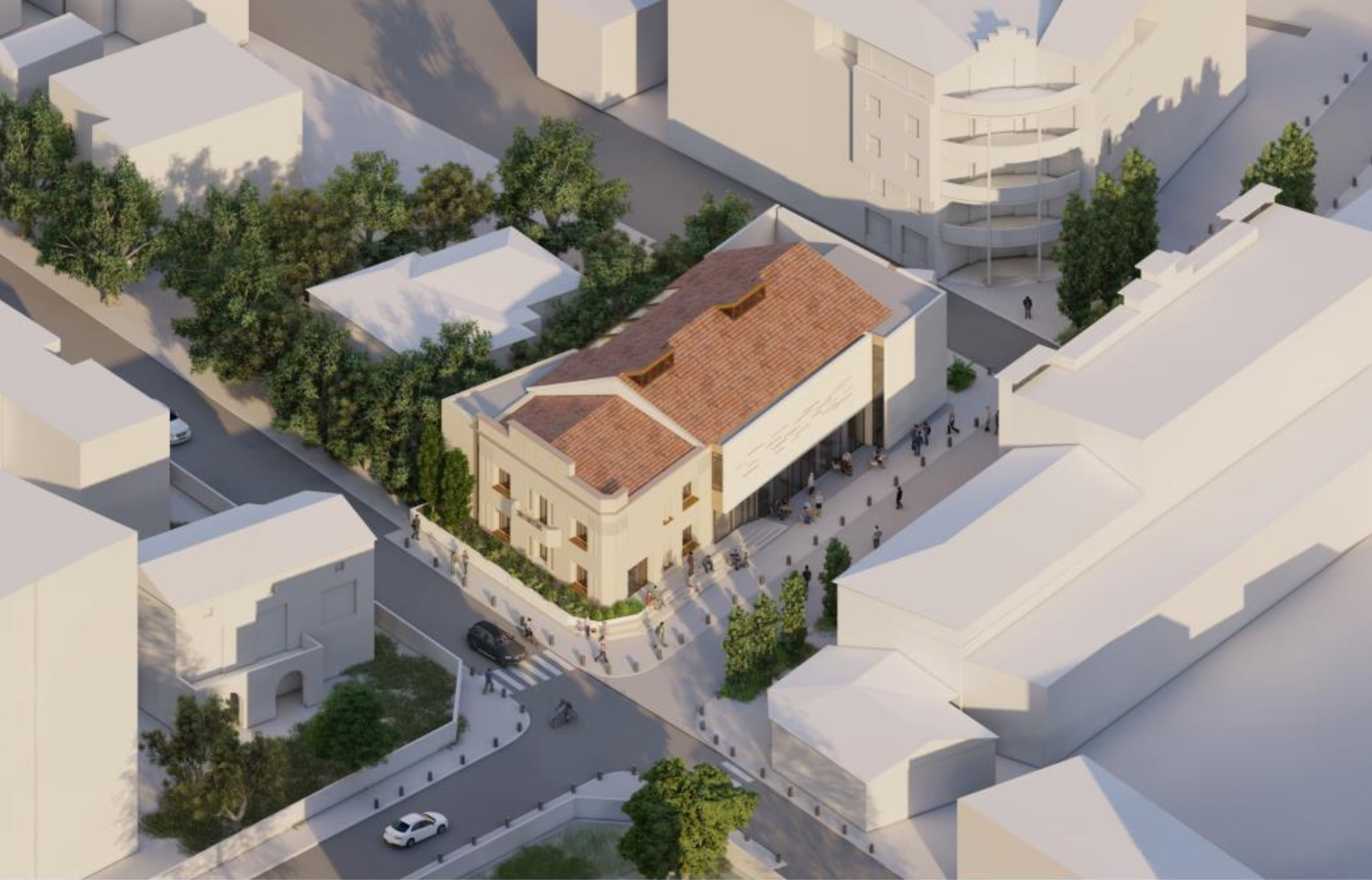 Reconfiguration globale des ouvrages abritant l’ancien Cinéma Rex pour le transformer en Médiathèque Tiers Lieu.