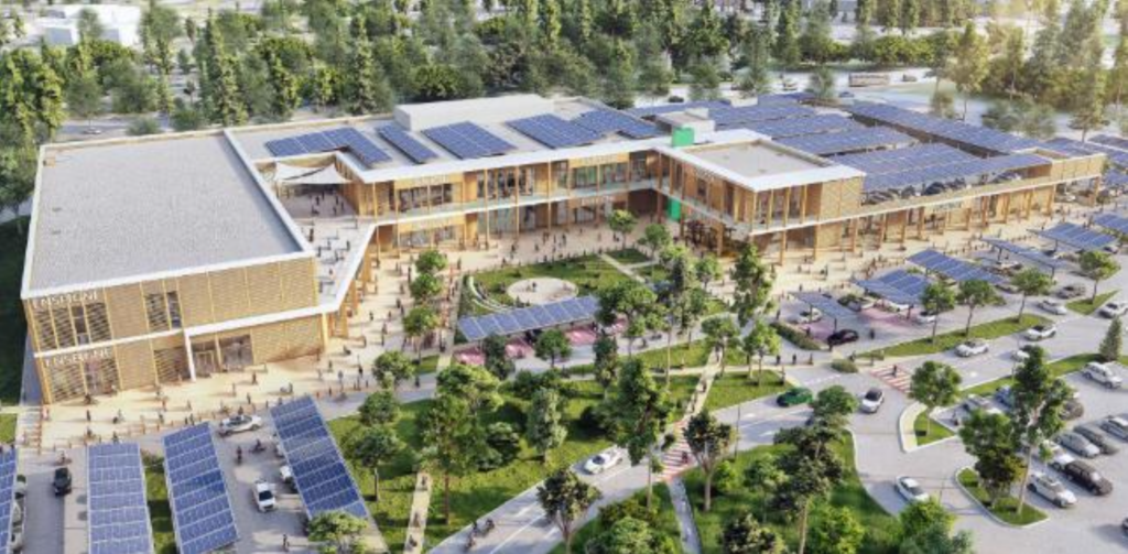 - Un R+1 à usage de services dont loisirs et restauration, nappe de parking (176 places), d'environ 6 375 m² de SDP